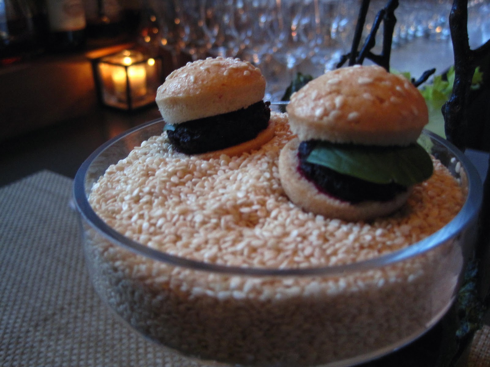 Amuse 4: Mini beet sliders served in a glass of seeds. Beety perfection. Unsurprisingly, it went very well with my drink.